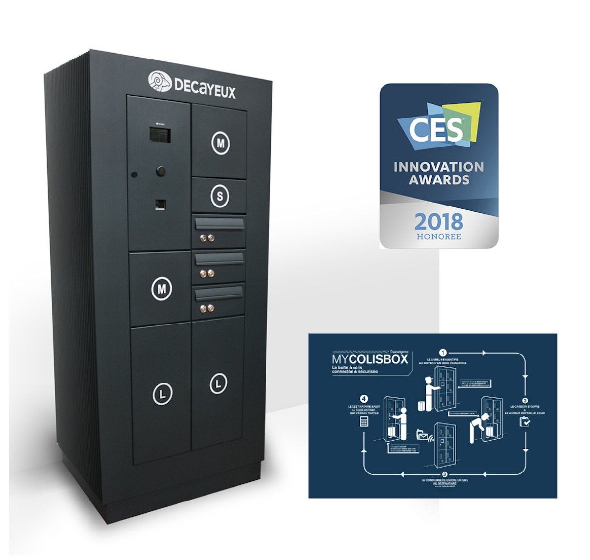 Une boîte aux lettres connectée, permettant la livraison de courrier et de colis à domicile ou sur le lieu de travail : c’est le concept imaginé par Decayeux, entreprise familiale créée en 1872, qui a repris l’entreprise Whirpool à Amiens. Mycolisbox® rend simple et flexible la réception d’un colis. L’identification des destinataires est facilitée grâce à son écran tactile, les livreurs étant enregistrés en mode « permanent » ou « éphémère ». Une fois le colis déposé, une alerte est automatiquement envoyée par SMS. Le Groupe Decayeux a reçu un « CES Innovation Honorees 2018 » pour cette innovation.
