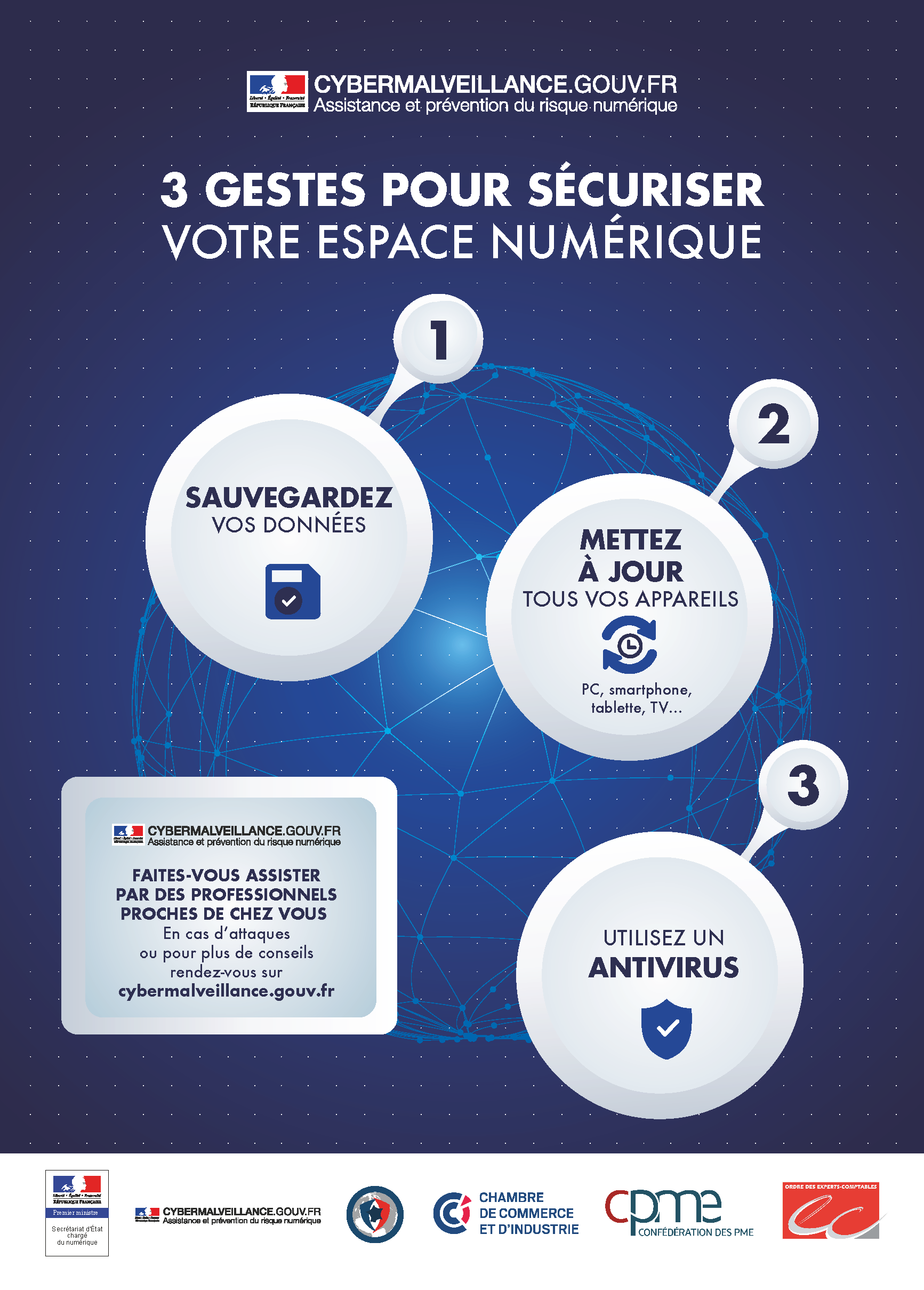 Vous utilisez au quotidien le numérique pour votre activité professionnelle et ne pourriez probablement plus travailler sans. La menace cyber évolue et s’oriente de plus en plus vers les PME notamment à des fins d’arnaques ou de rançons. Pour sécuriser votre espace numérique, des gestes très simples peuvent vous permettre d’échapper à un grand nombre d’attaques !